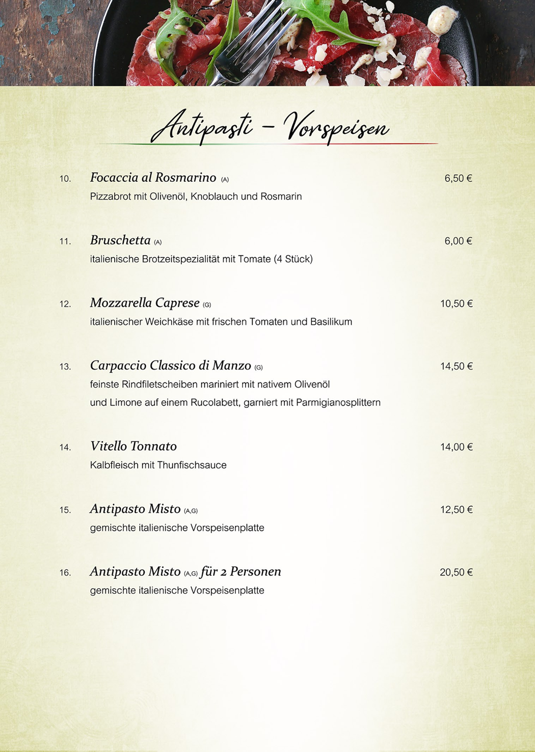 Bitte werfen Sie vorab einen Blick in unsere Speisekarte.